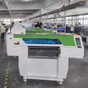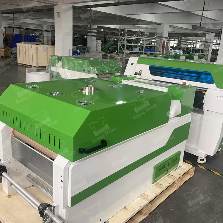 Digital PET Film Printing Machine with Powder Shaking integrates vinyl powder coating and drying into one machine. When the film/vinyl is dried out, it can be used to transfer print onto the garment.