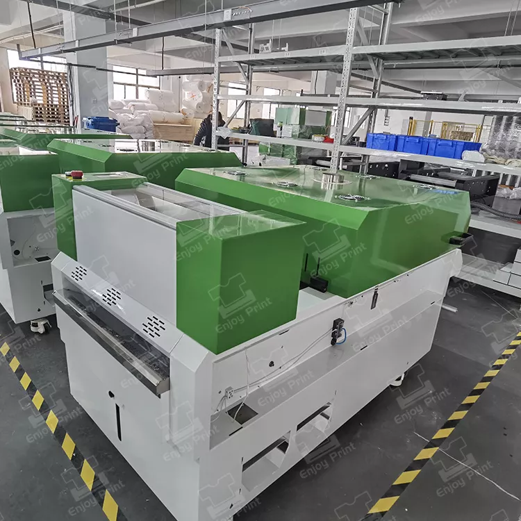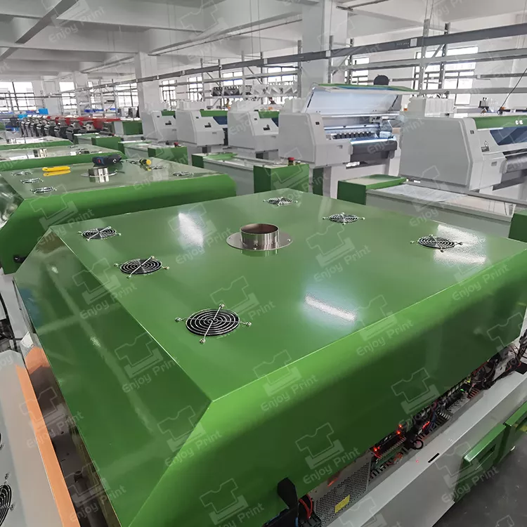 Digital PET Film Printing Machine with Powder Shaking integrates vinyl powder coating and drying into one machine. When the film/vinyl is dried out, it can be used to transfer print onto the garment.