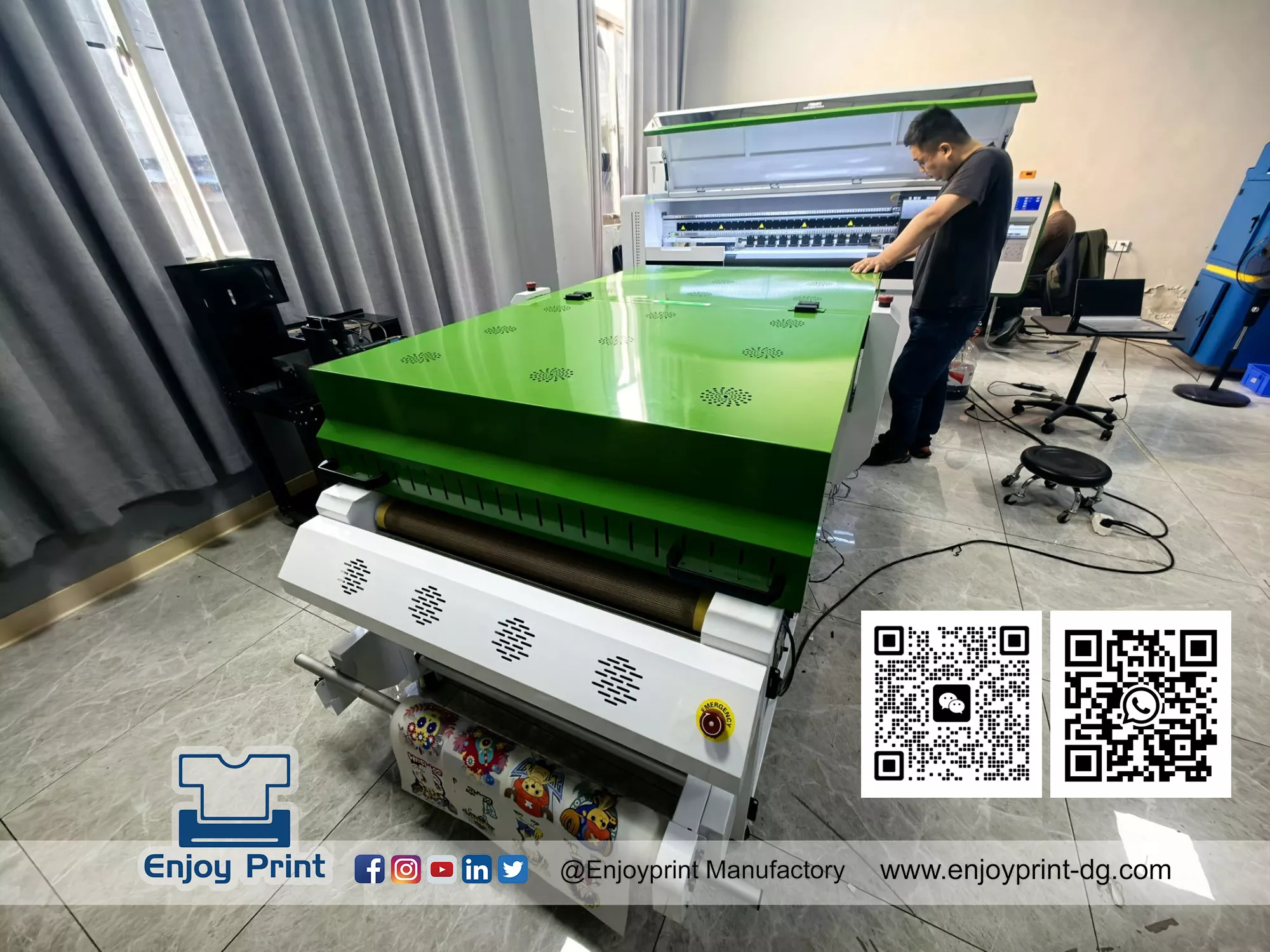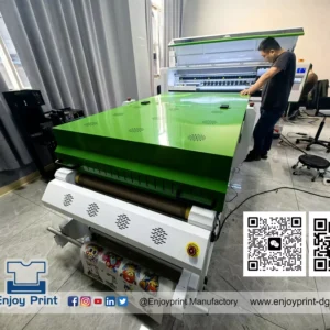 Digital PET Film Printing Machine with Powder Shaking integrates vinyl powder coating and drying into one machine. When the film/vinyl is dried out, it can be used to transfer print onto the garment.